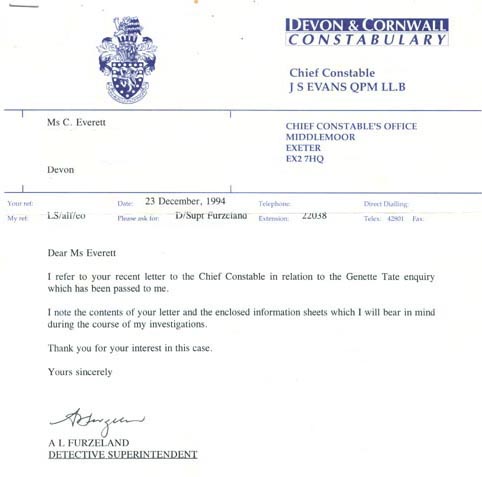 GENETTE TATE Drawing produced of the killer of Genette tate by Carol in 1994. This sent to police in Dec 1994 when renewed interest in case materialised. Carol Info 2005 Apr. At the time of the murder hundreds of people